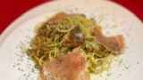 パスタはフェットチーネ。幅広でもっちりした麺が、たっぷりのソースをしっかり受け止め、ひと口ごとに満足感たっぷり。