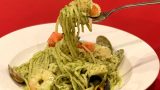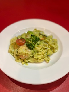 平打ちでもちもちのフェットチーネにたっぷり絡むのは、爽やかなグリーンのバジルクリームソース。見た目にもやさしく、まるで春風のような軽やかさ。
