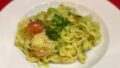 皿の中央には、しっとり艶やかなジェノベーゼソースをまとったリングイネ。
