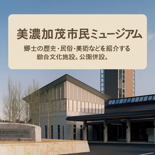緑豊かな自然に囲まれた場所に佇む「美濃加茂市民ミュージアム」は、郷土の歴史・民俗・美術を一体的に学べる、地域密着型の総合文化施設です。