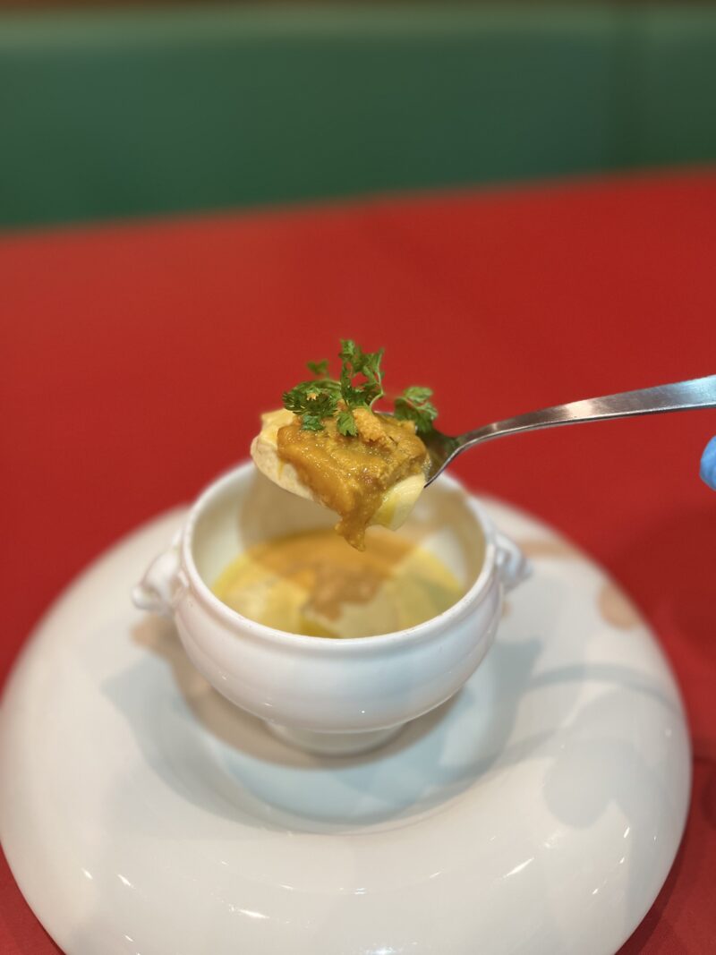ウニの甘みと濃厚な旨みが、ロワイヤルのやわらかな卵の風味と重なり、ひと口ごとにほどけていく上品なハーモニーをお楽しみいただけます。