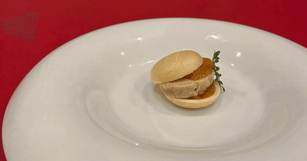 一口食べると、しっとり最中の食感、続いて、オレンジジャムの甘みと爽やかな香り、最後にフォワグラの濃厚な風味がお口に広がります。