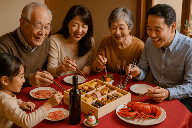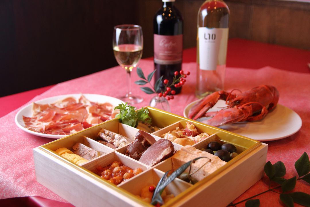 ■豪華洋風お節セット【オマール海老又はすき焼きが選べてワインや生ハムが付いてくる一番人気】