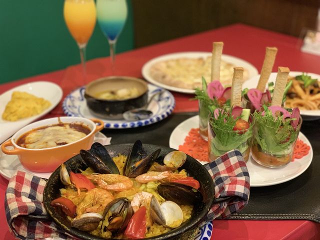 おしゃべりしながらパスタにピッツア、アヒージョにパエリア デザートまで
